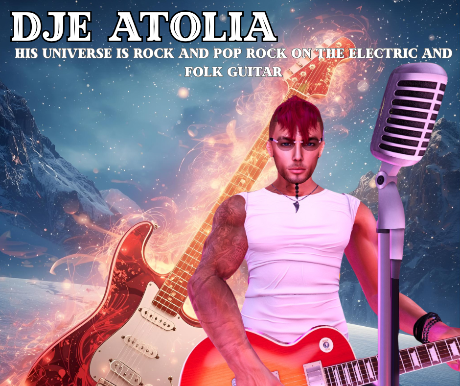 Dje Atolia is a French rock guitarist with 29 years experience and has two bands in real life. His universe is Rock and Pop Rock on the electric and folk guitar. He performs in live concerts and can range from music covers of Red Hot, Muse, Queen, Deep Purple, Green Day, Oasis, Hendrix, Clapton, Gary Moore, Pink Floyd, ZZ Top, Santana and more….